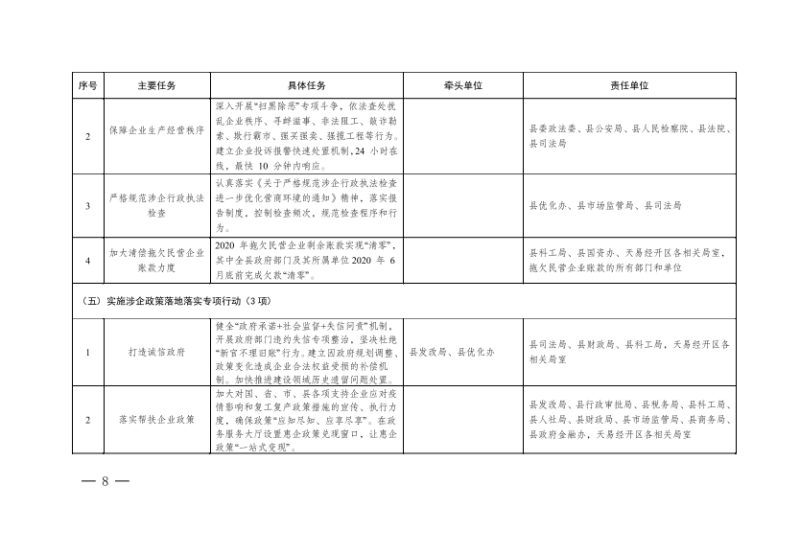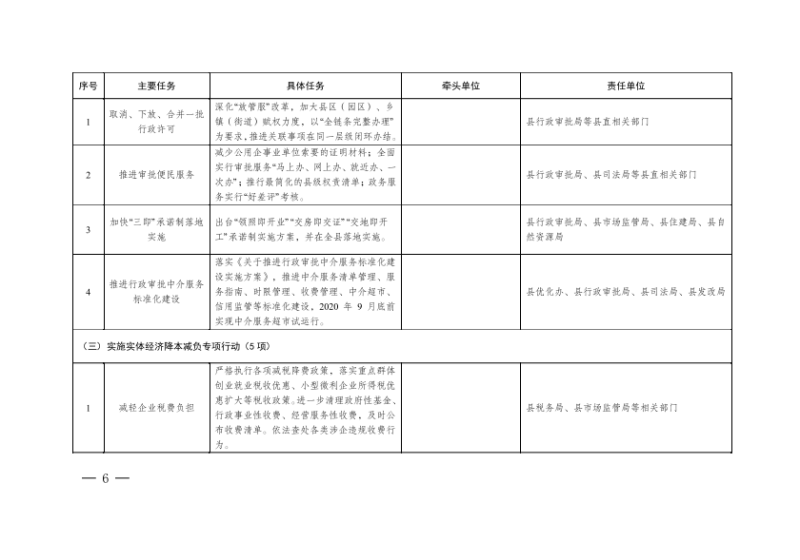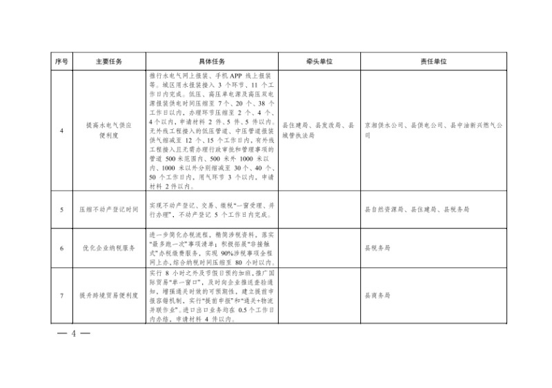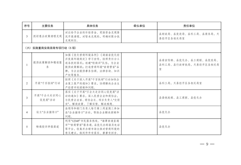 一、各部門、各單位主要負責人要切實履行優化營商環境的 主體責任,各牽頭單位要加強統籌協調,責任單位要積極配合, 形成共同優化營商環境的工作合力。