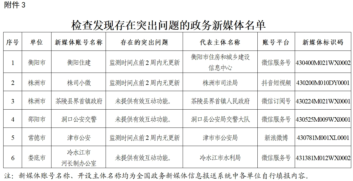 3.檢查發(fā)現(xiàn)存在突出問題的政務(wù)新媒體名單
