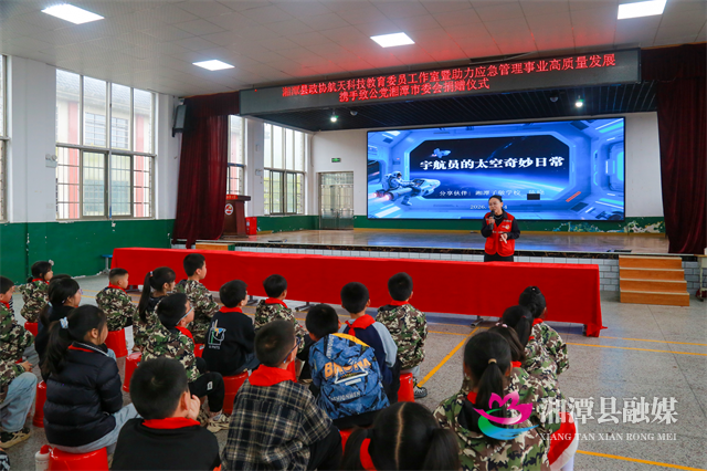 儀式結束后,志愿者走進課堂,為學生們帶去了生動的公益科學課與應急安全體驗課。同學們在動手實踐與互動中零距離感受科技魅力,激發求知熱情,讓“航天夢”在偉人故里生根發芽。