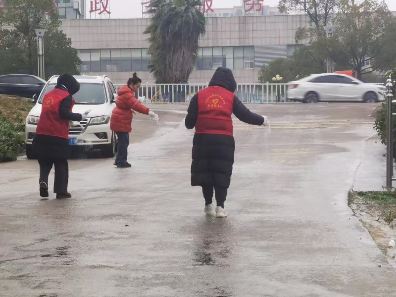 1月21日,受強(qiáng)冷空氣影響,轄區(qū)部分道路出現(xiàn)結(jié)冰現(xiàn)象。為保障居民出行安全,社區(qū)組織志愿者開(kāi)展“撒鹽除冰行動(dòng)”。在大塘安置區(qū)與天易國(guó)際路口的下坡結(jié)冰路段,均勻撒鹽加速融冰,清掃冰渣;在社區(qū)周邊結(jié)冰路段潑灑熱水,用鐵鏟、掃把清掃殘冰。同時(shí),社區(qū)在醒目位置張貼警示標(biāo)識(shí),提醒居民路面結(jié)冰,注意緩步慢行。