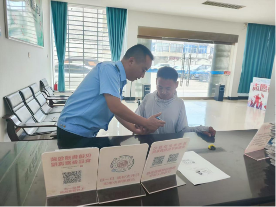 (圖為:射埠市場監管所工作人員為殘疾人提供辦證服務)