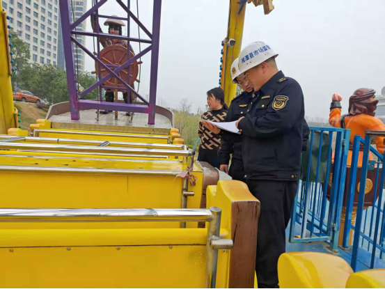 (圖為:檢查大型游樂設(shè)施的運(yùn)行及維護(hù)保養(yǎng)情況)