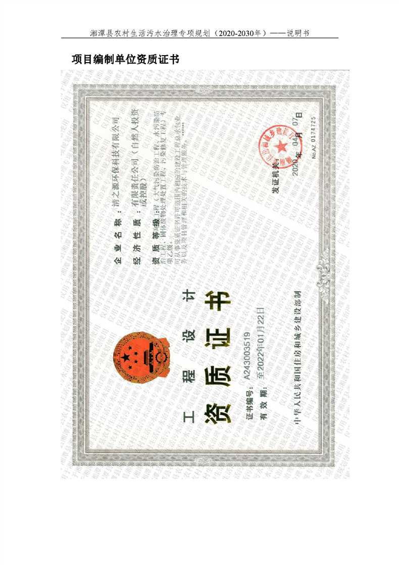 湘潭縣農(nóng)村生活污水治理專項規(guī)劃(2020-2030)