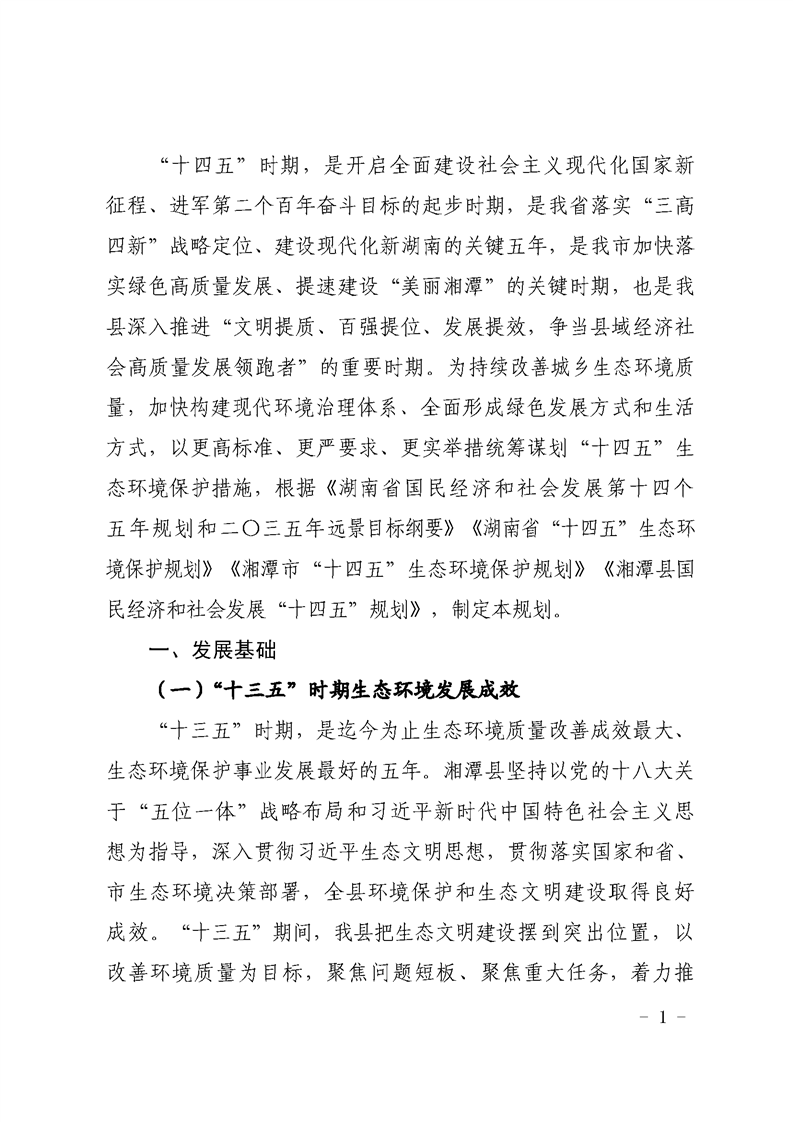 湘潭縣“十四五”生態(tài)環(huán)境保護(hù)規(guī)劃
