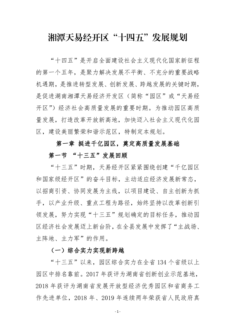 湖南湘潭天易經(jīng)濟(jì)開發(fā)區(qū)“十四五”發(fā)展規(guī)劃