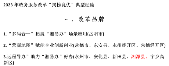 2月23日,湖南省數(shù)據(jù)局印發(fā)《關(guān)于2023年政務(wù)服務(wù)改革“揭榜競優(yōu)”典型經(jīng)驗(yàn)的通報(bào)》,湘潭縣行政審批服務(wù)局揭榜的“遠(yuǎn)程導(dǎo)辦”助力“湘易辦”好辦工作獲得表彰,入選省級典型經(jīng)驗(yàn)。