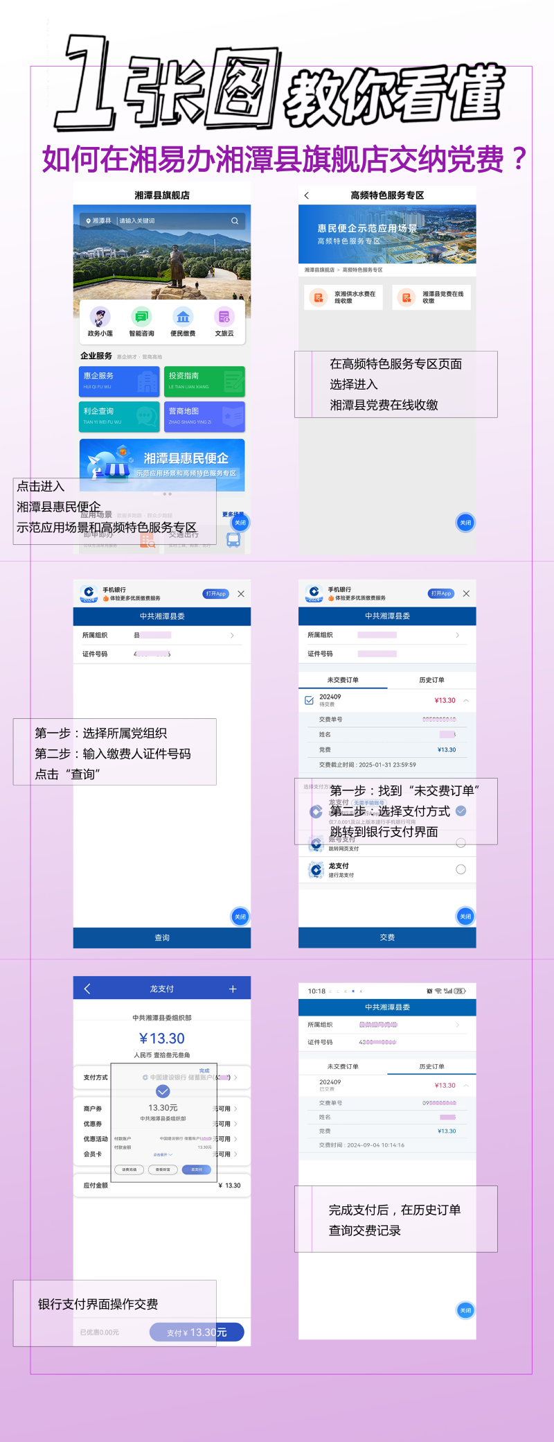 一圖看懂:如何在湘易辦湘潭縣旗艦店交納黨費