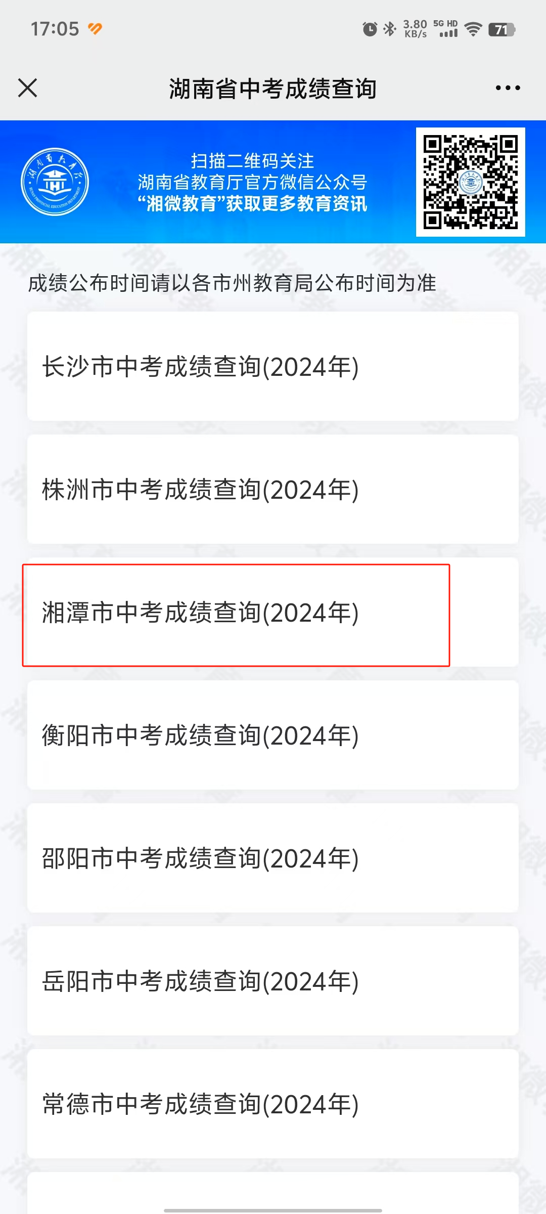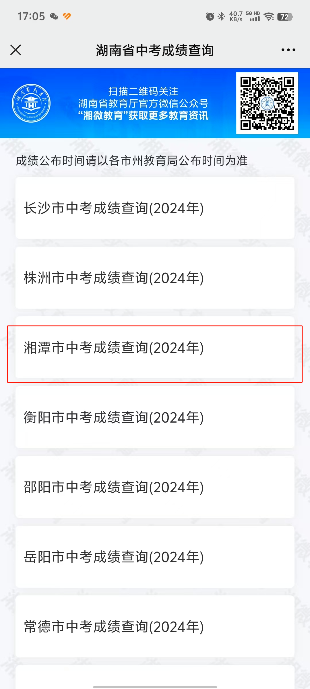 湘潭市初中學業水平考試成績和普通高中招生錄取結果今天公布!查詢通道→