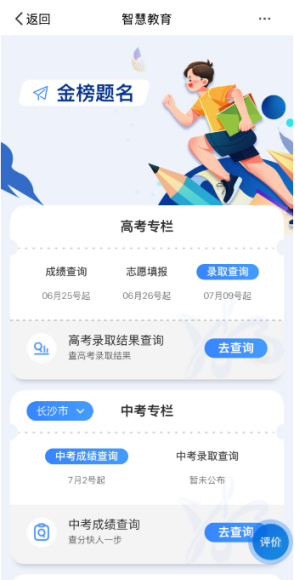 高考查分,錄取查詢一站式高考服務,上“湘易辦”-“智慧教育”專區