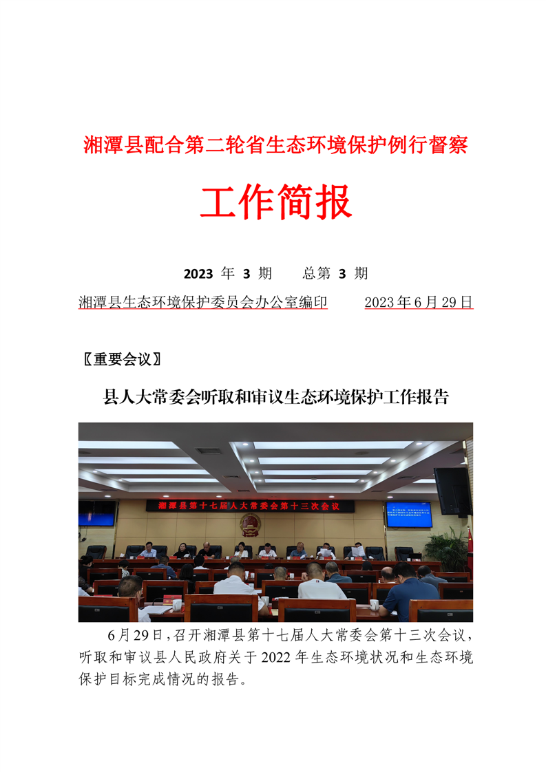 湘潭縣配合第二輪省生態環境保護例行督察工作簡報(第3期)