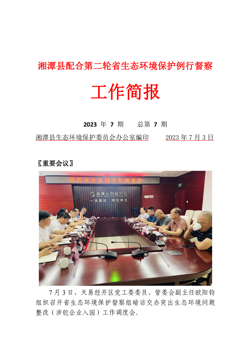 湘潭縣配合第二輪省生態環境保護例行督察工作簡報(第7期)