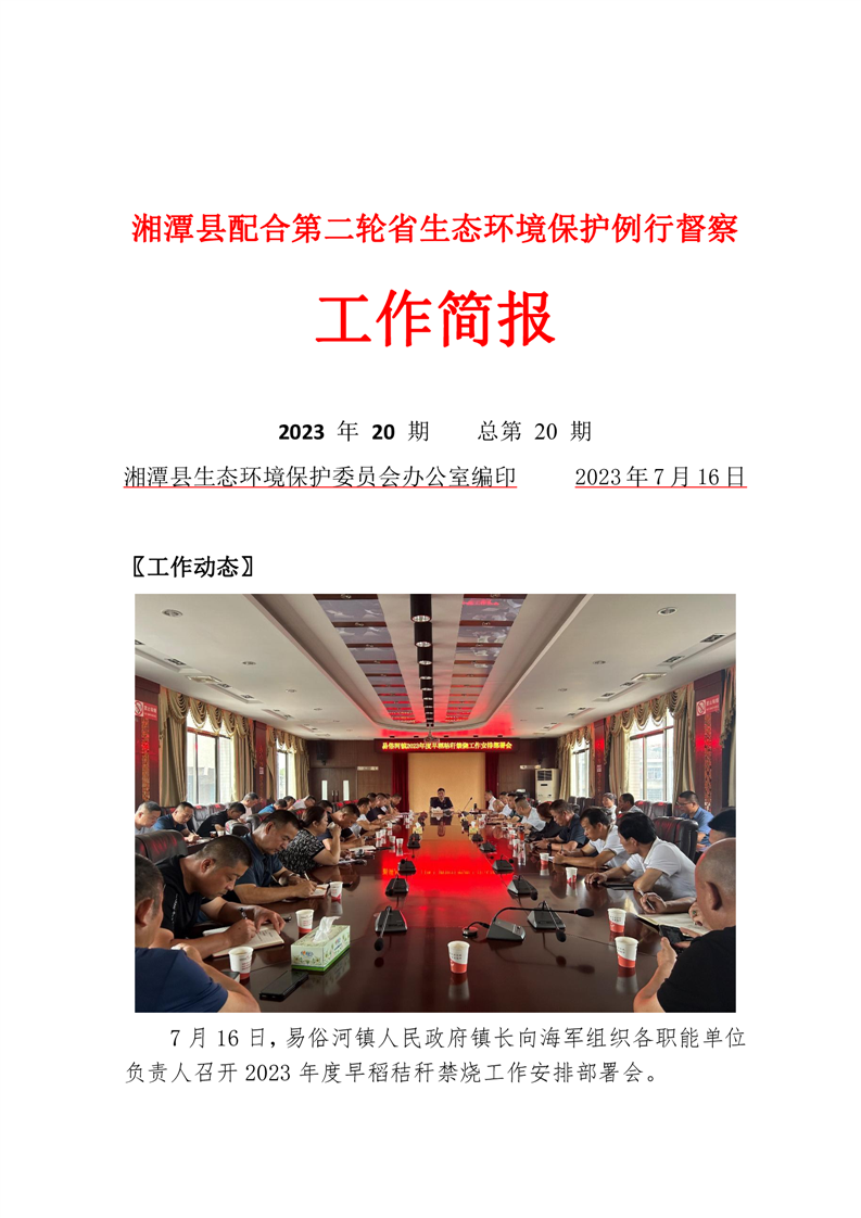 湘潭縣配合第二輪省生態環境保護例行督察工作簡報(第20期)