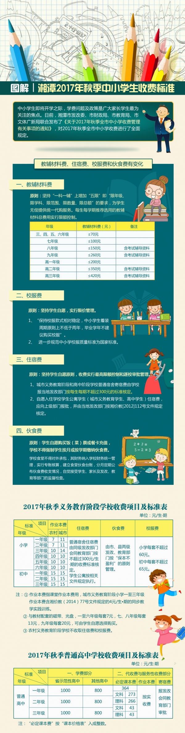 一圖讀懂:湘潭2017年秋季中小學(xué)生收費標準