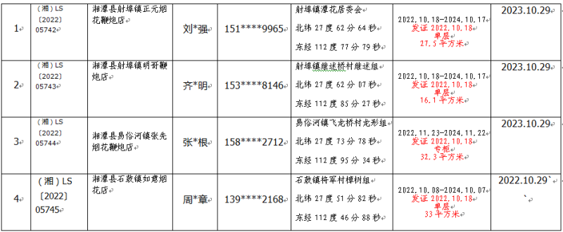 2022年10月20日煙花爆竹行政許可政務公開