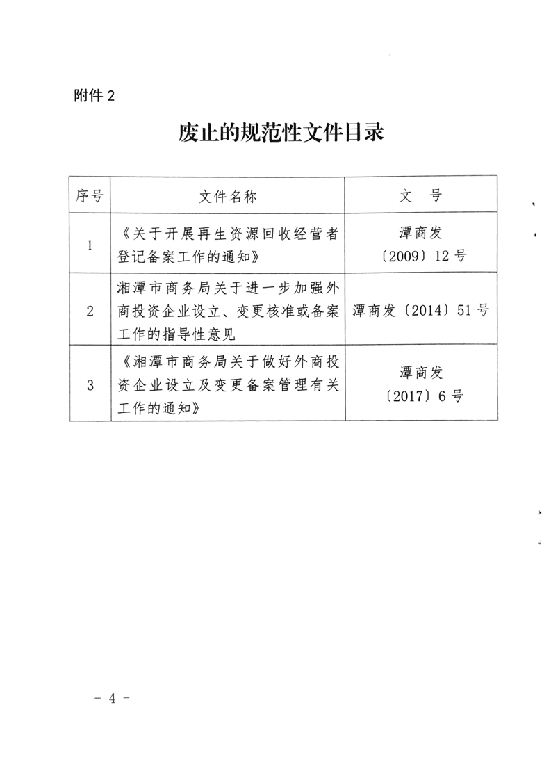 湘潭市商務局關于公布規范性文件清理結果的通知