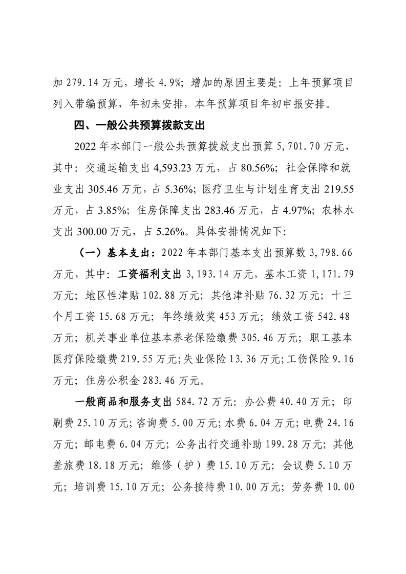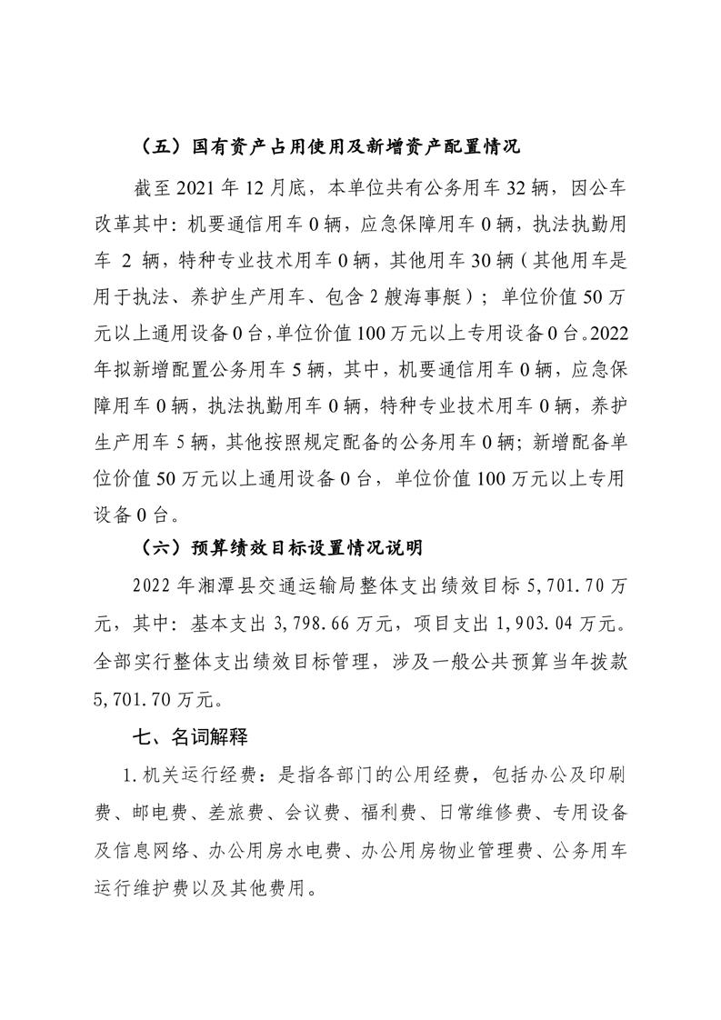 湘潭縣交通運輸局2022年部門預算和“三公”經費預算公開編制說明