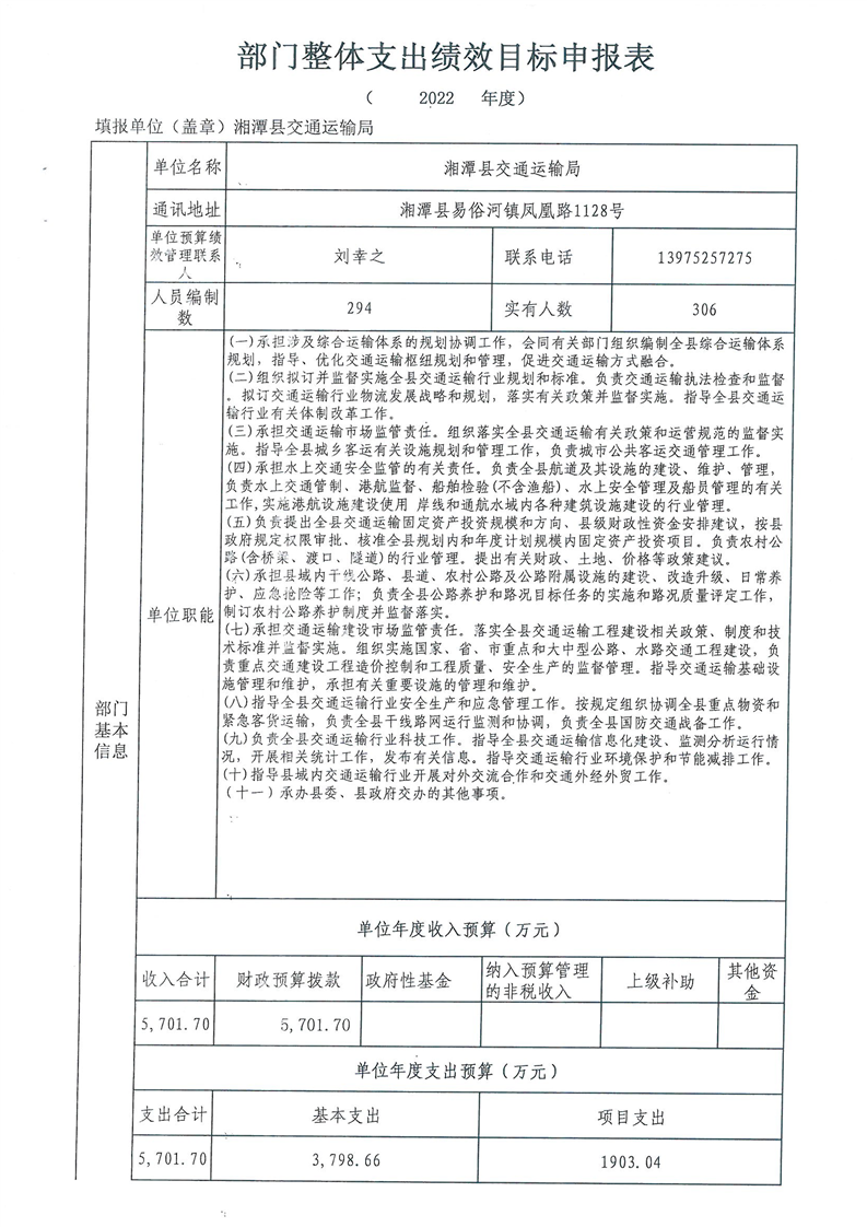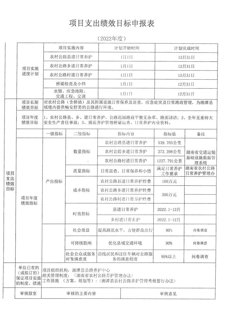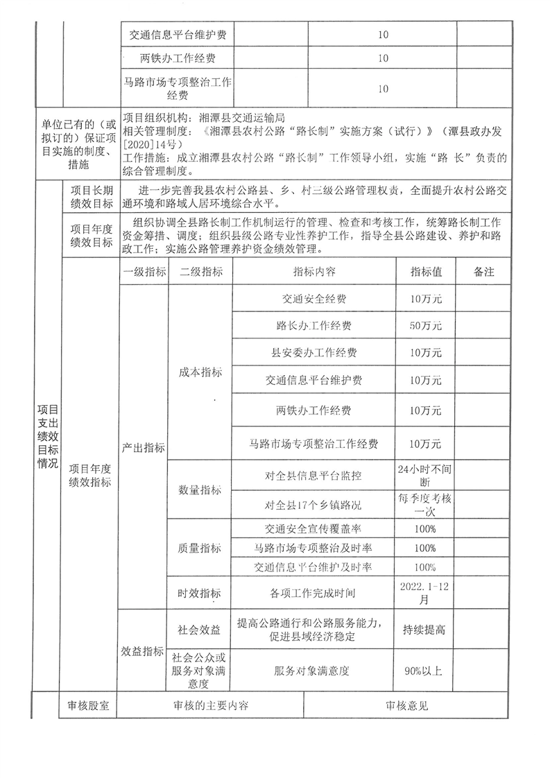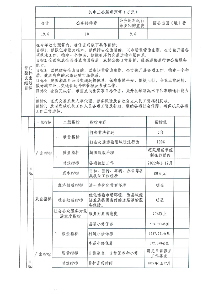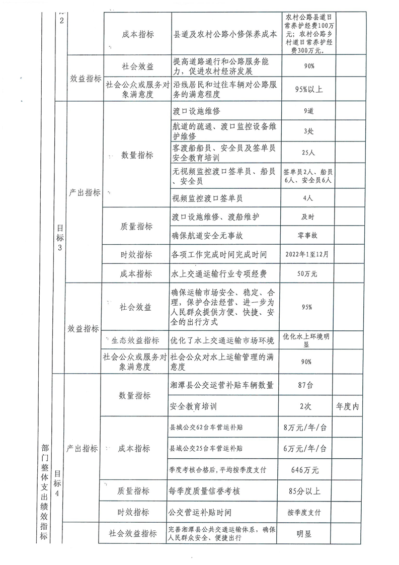 2022年湘潭縣交通運輸局部門整體支出績效目標申報