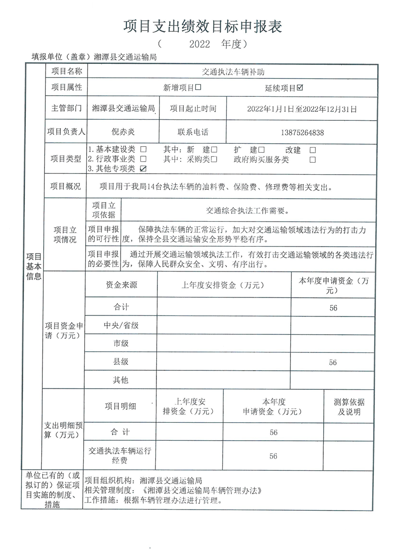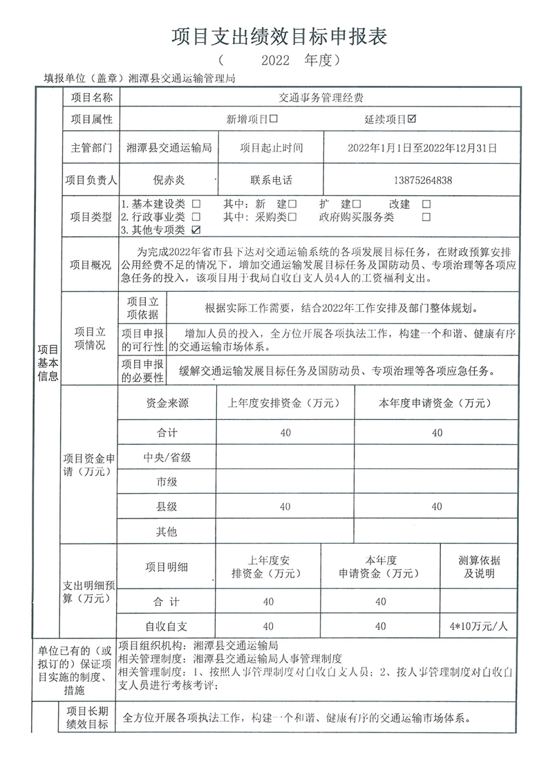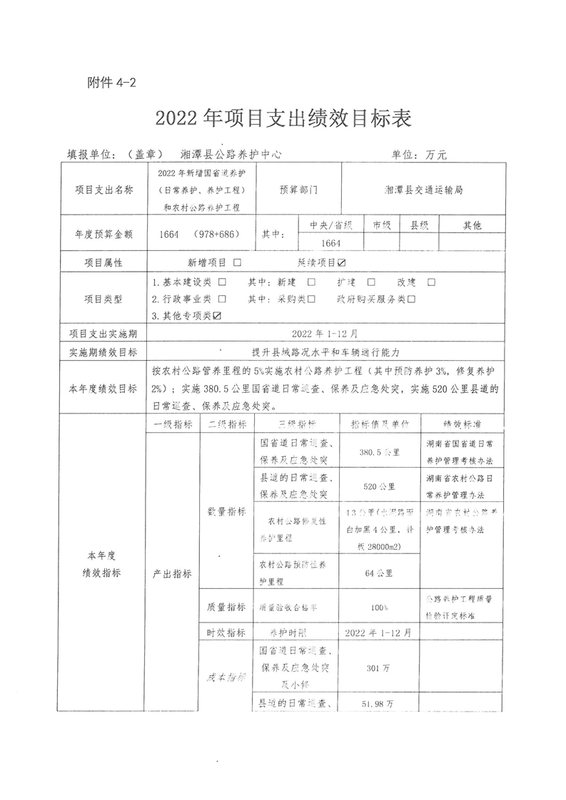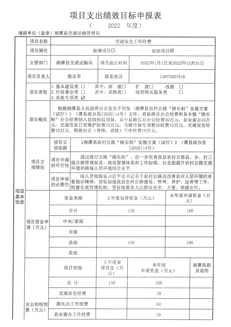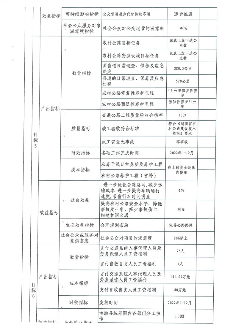 2022年湘潭縣交通運輸局部門整體支出績效目標申報