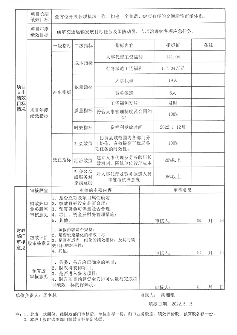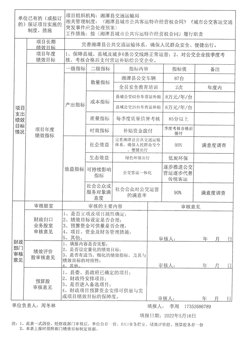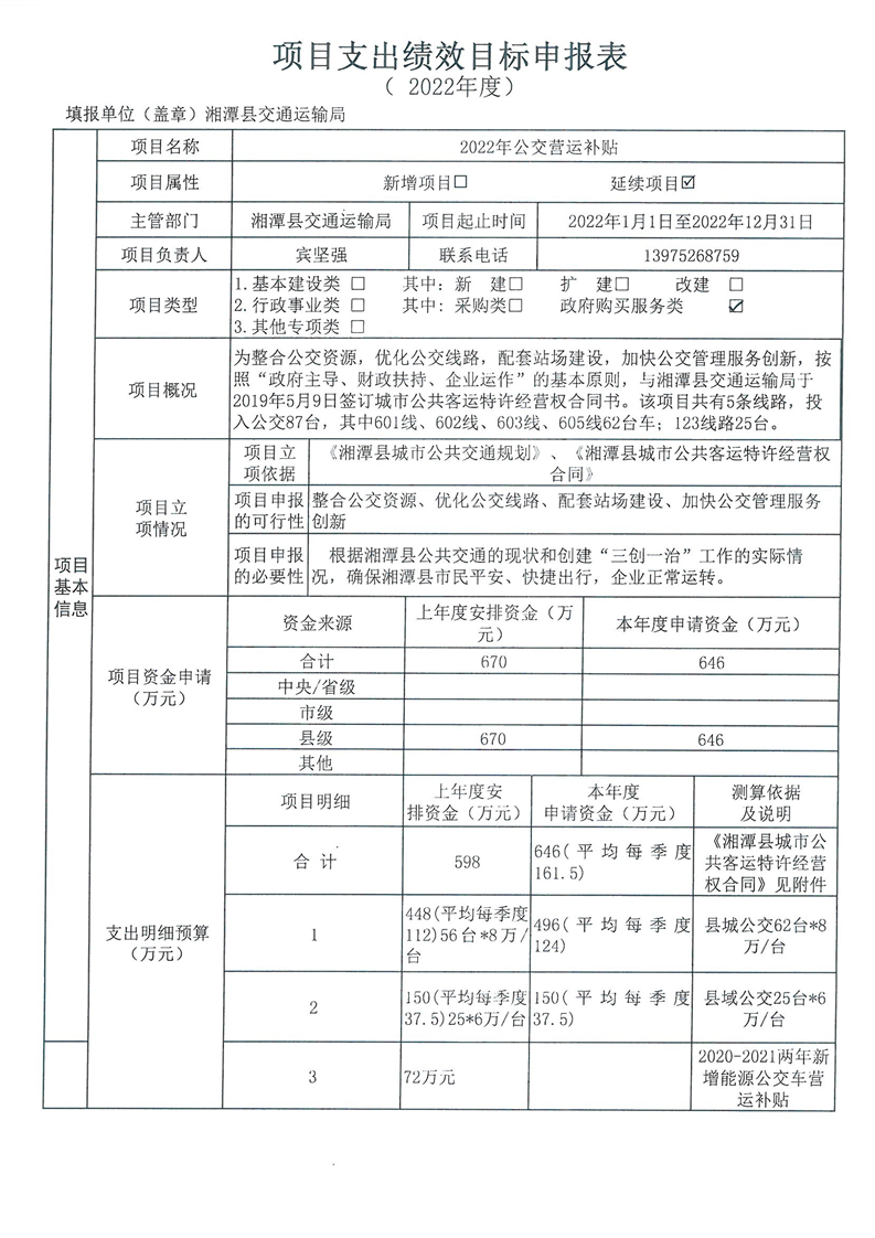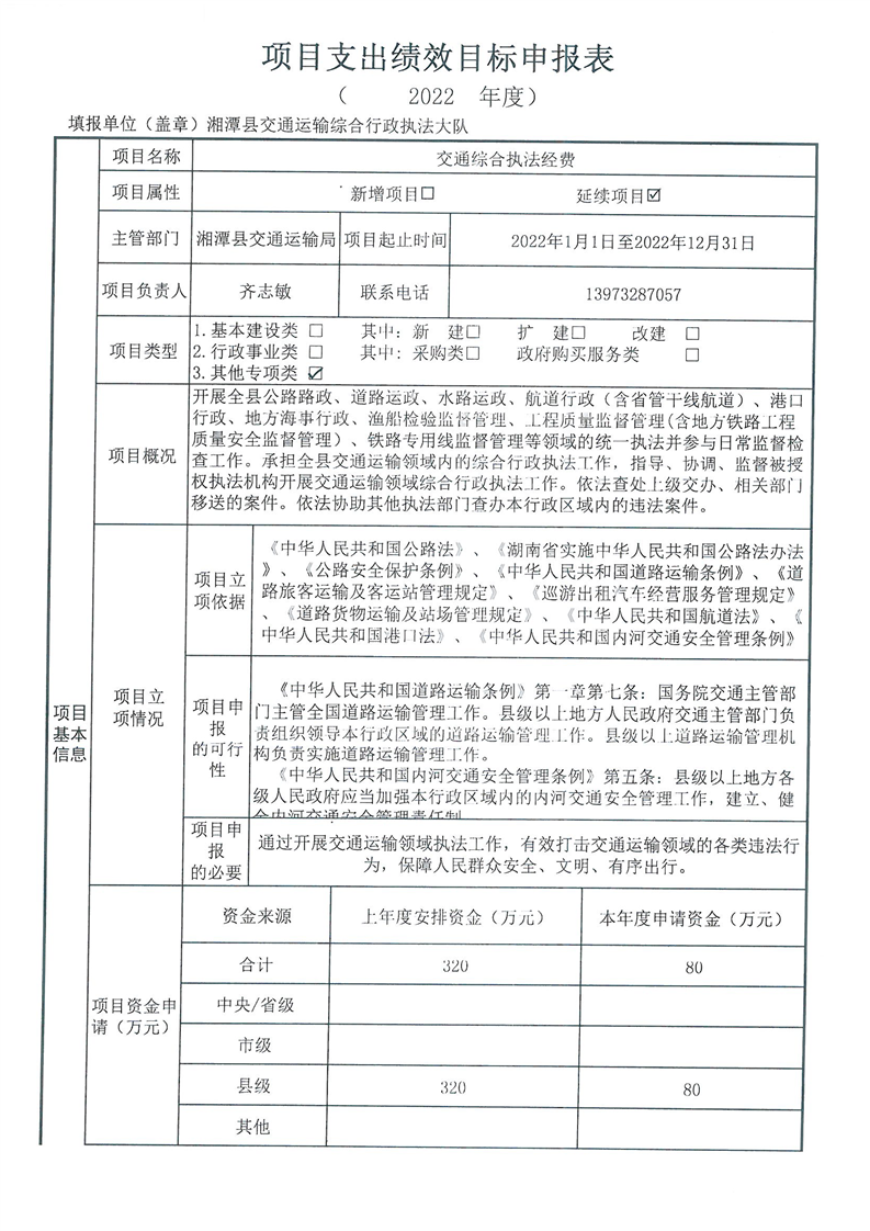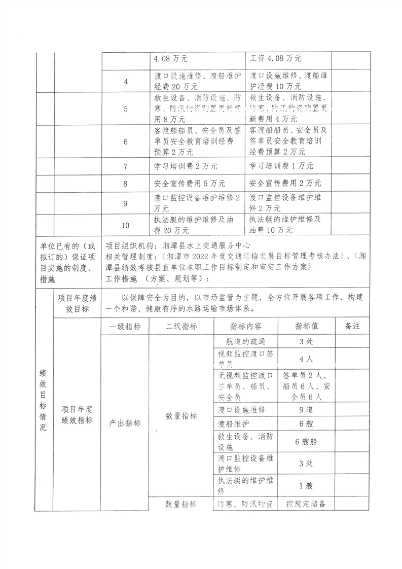 2022年湘潭縣交通運輸局部門整體支出績效目標申報