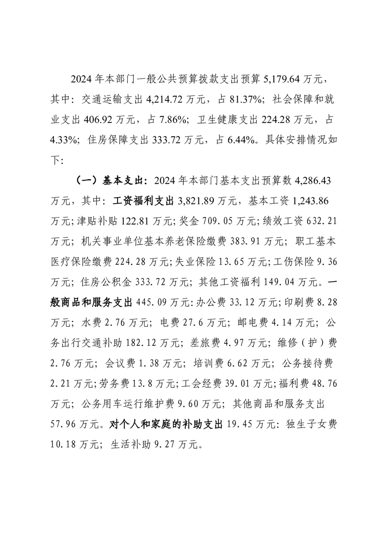 湘潭縣交通運輸局2024年部門預算和“三公” 經費預算公開說明