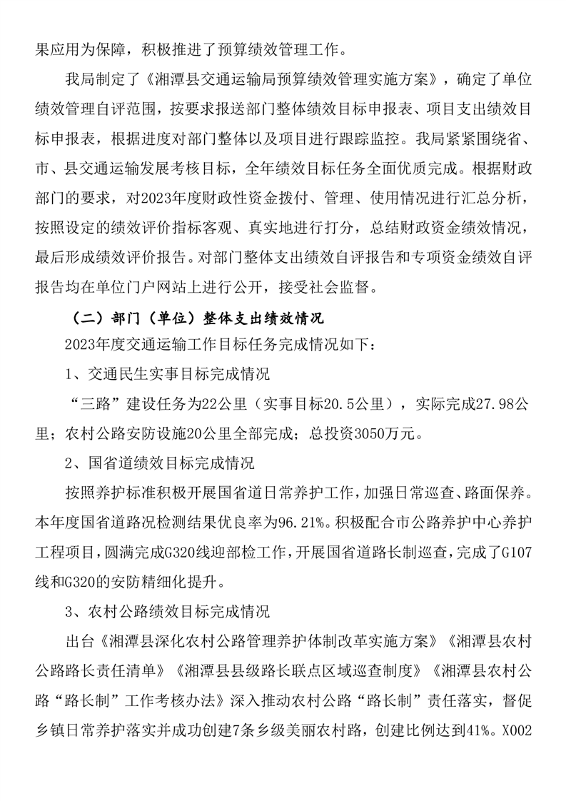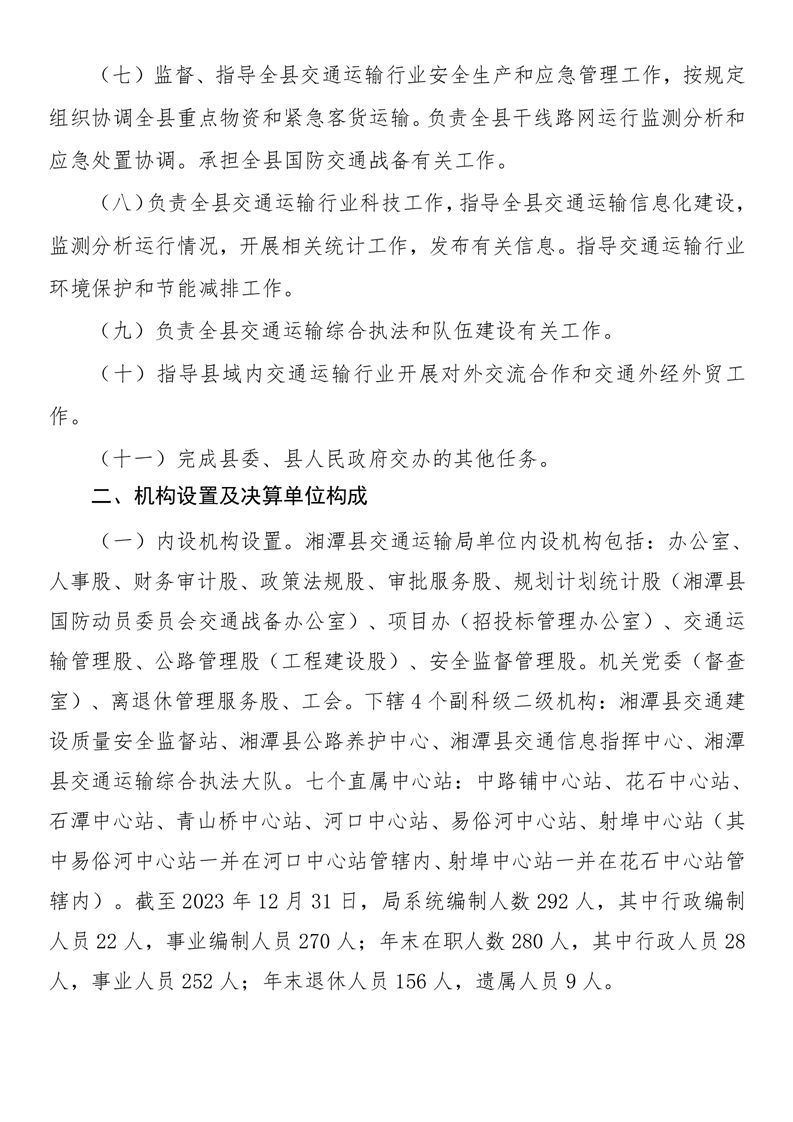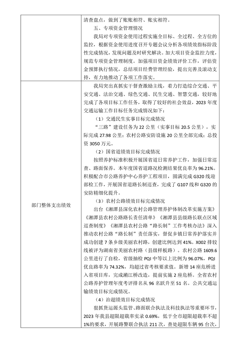 湘潭縣交通運輸局2023年度部門決算公開