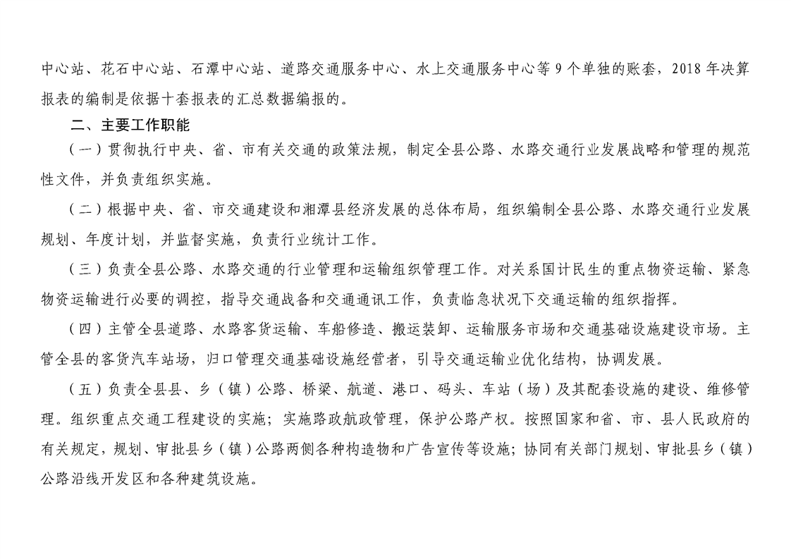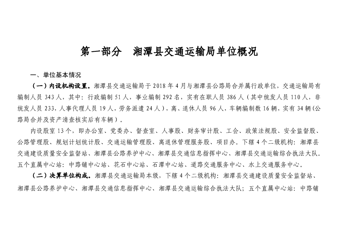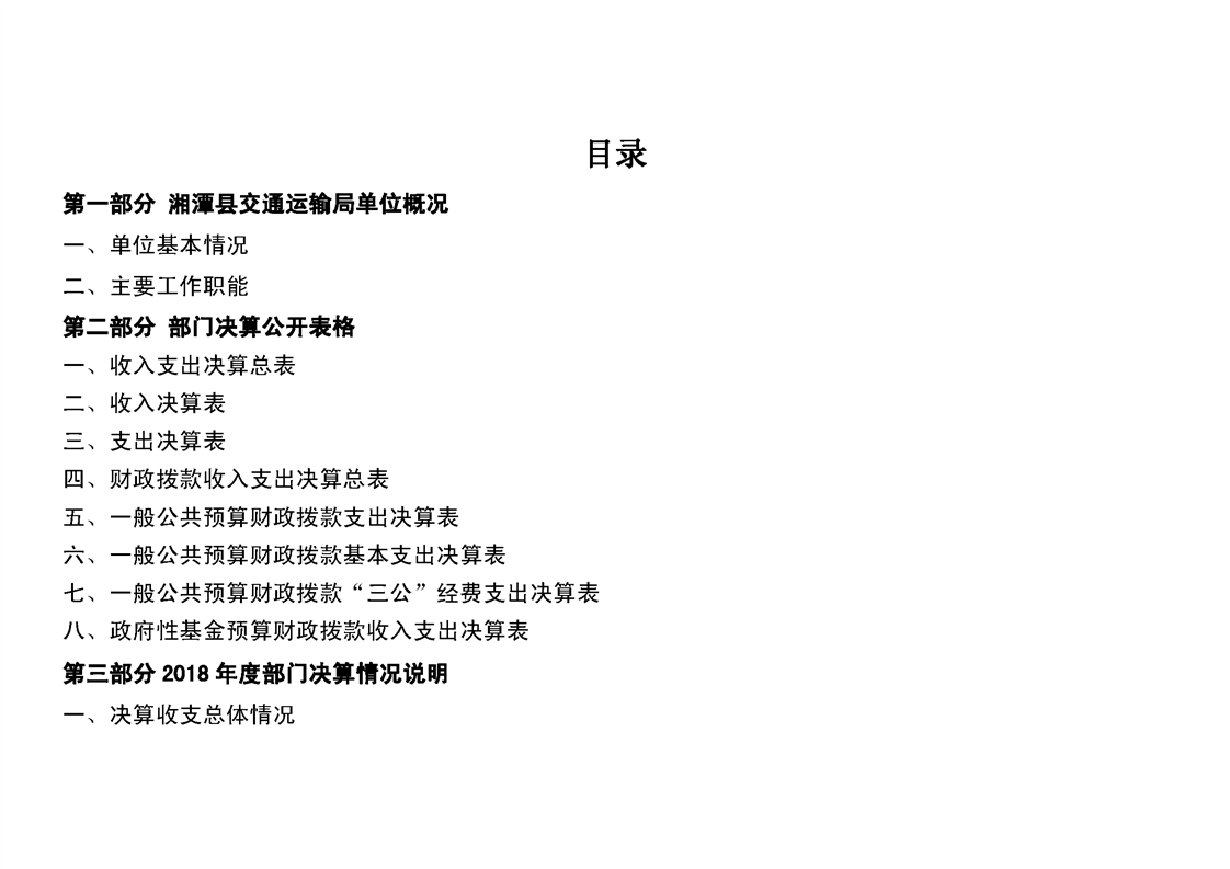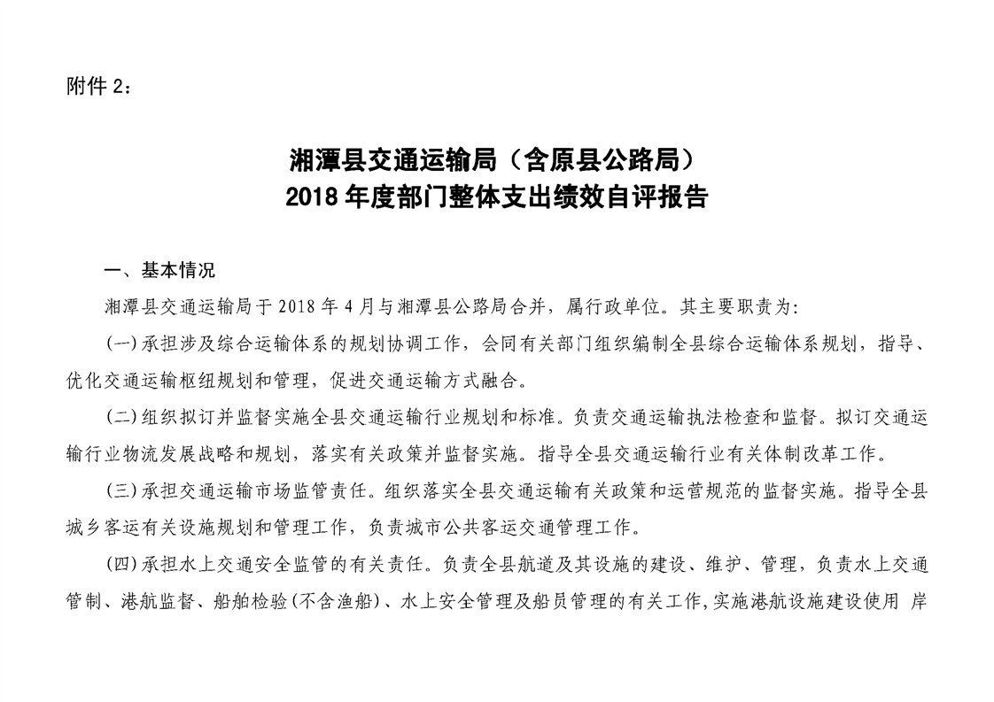 湘潭縣交通運輸局2018年度決算公開情況說明