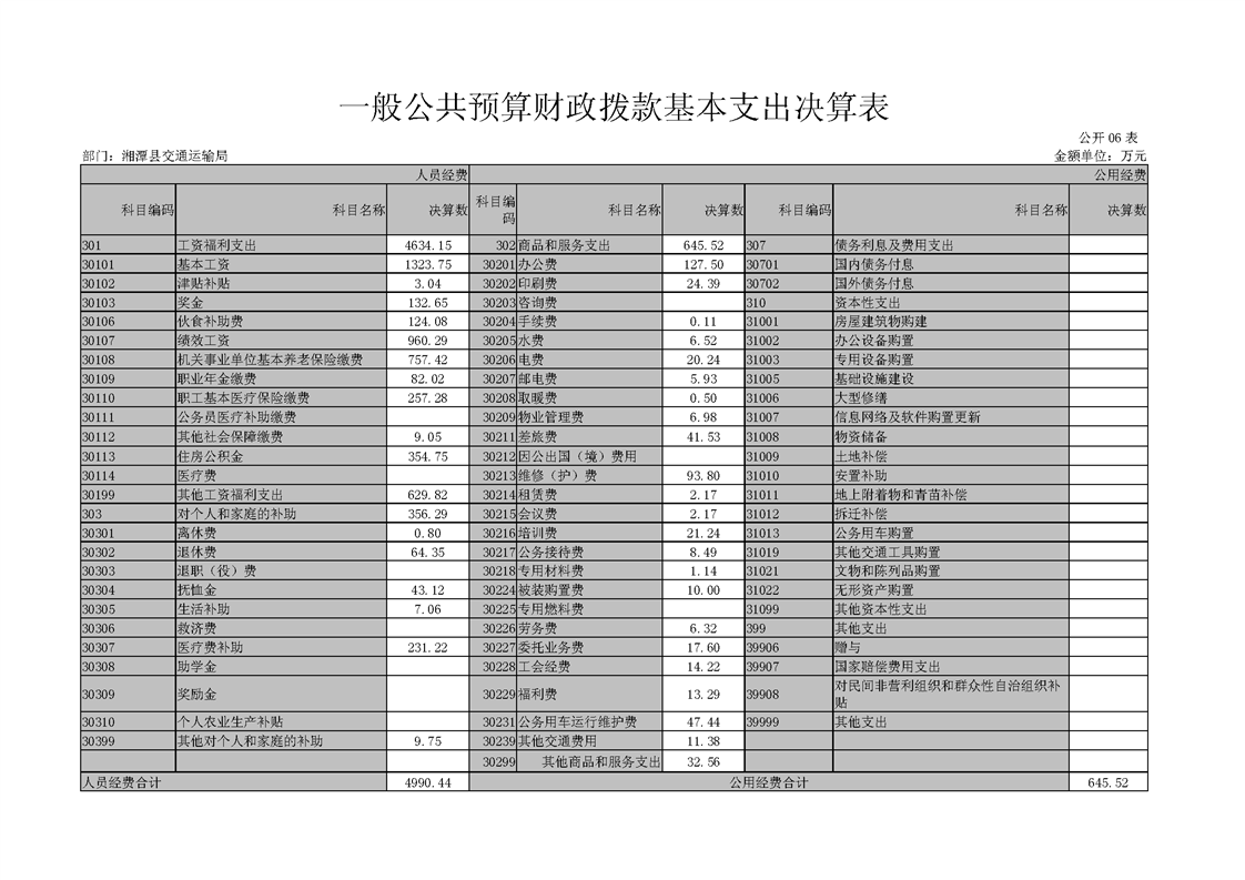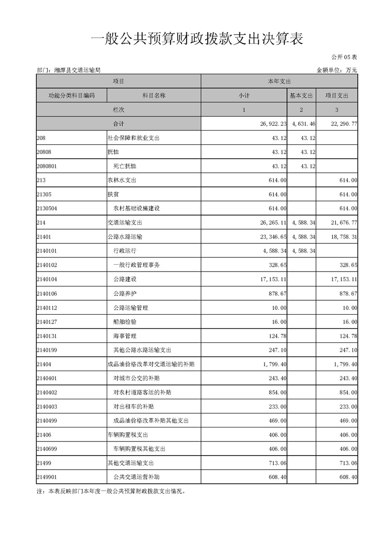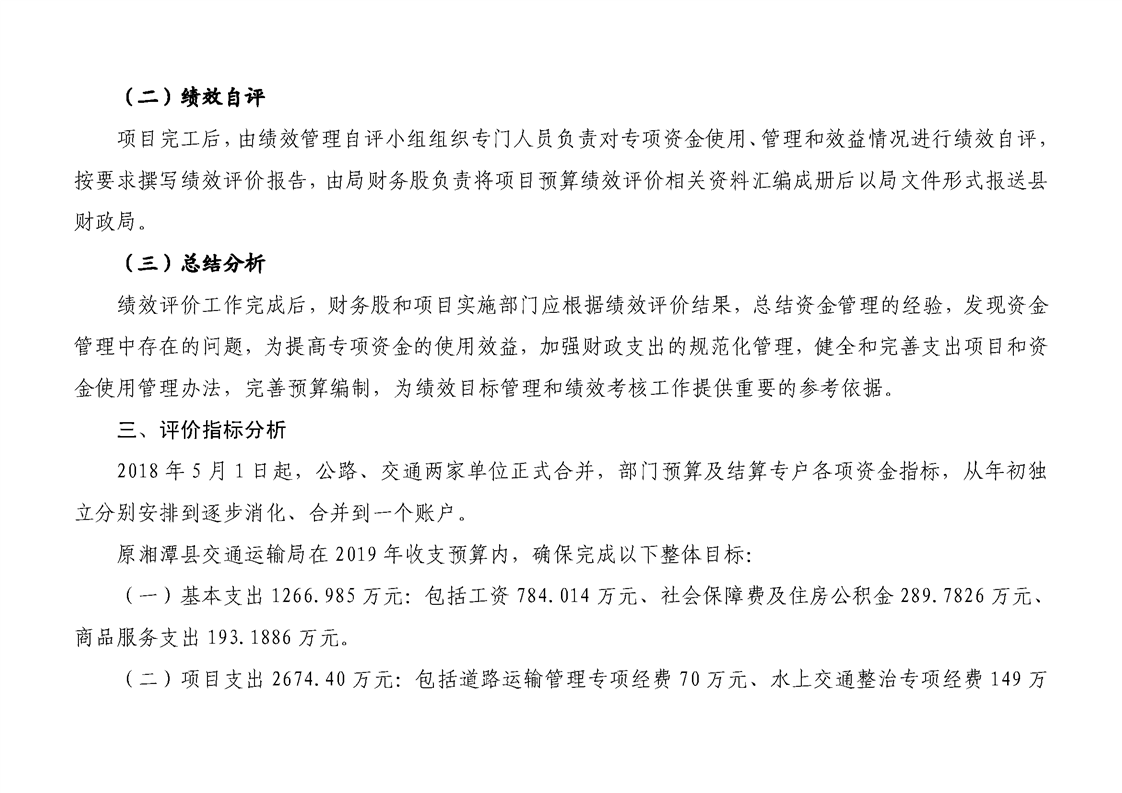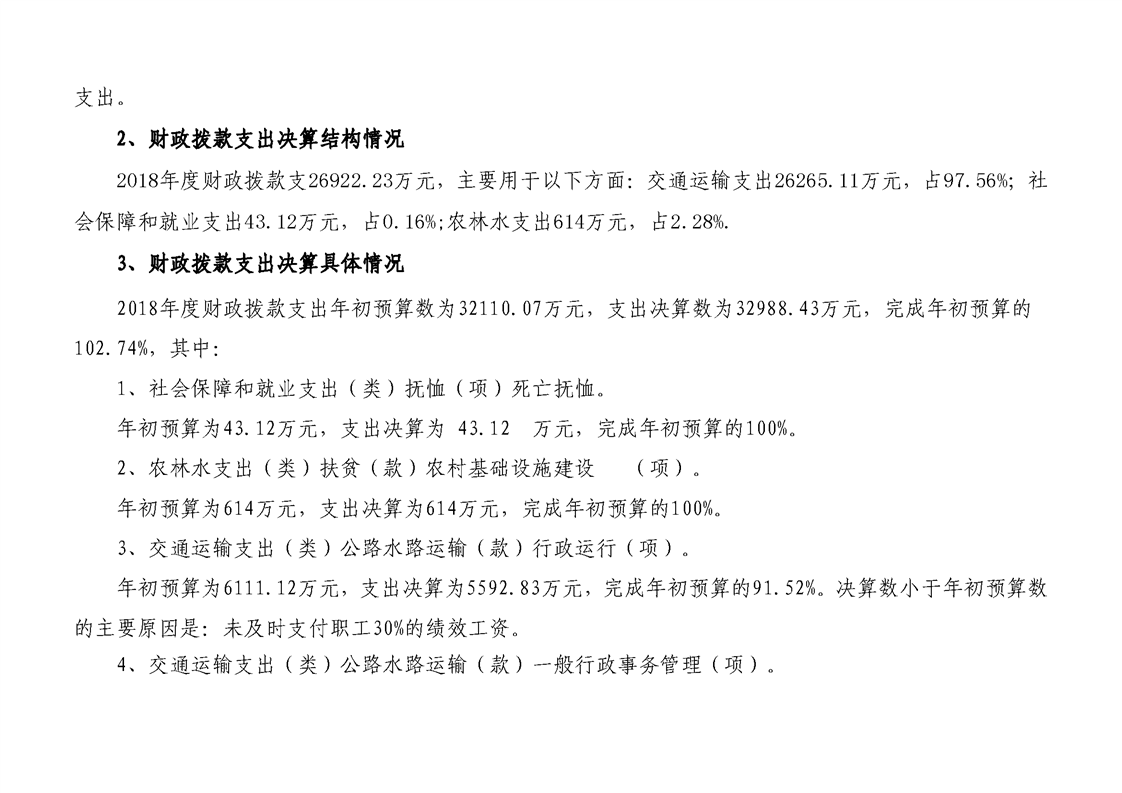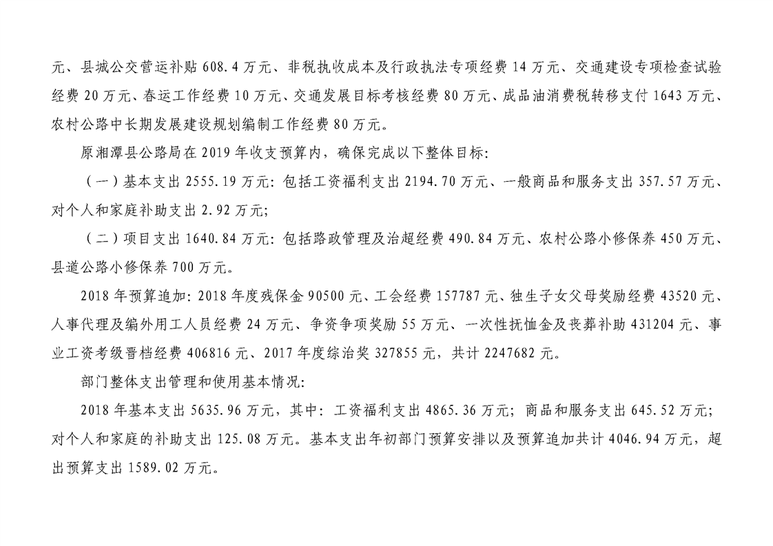 湘潭縣交通運輸局2018年度決算公開情況說明