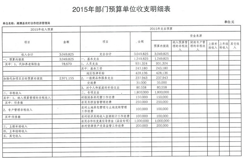 湘潭縣農經局2015年部門預算收支明細