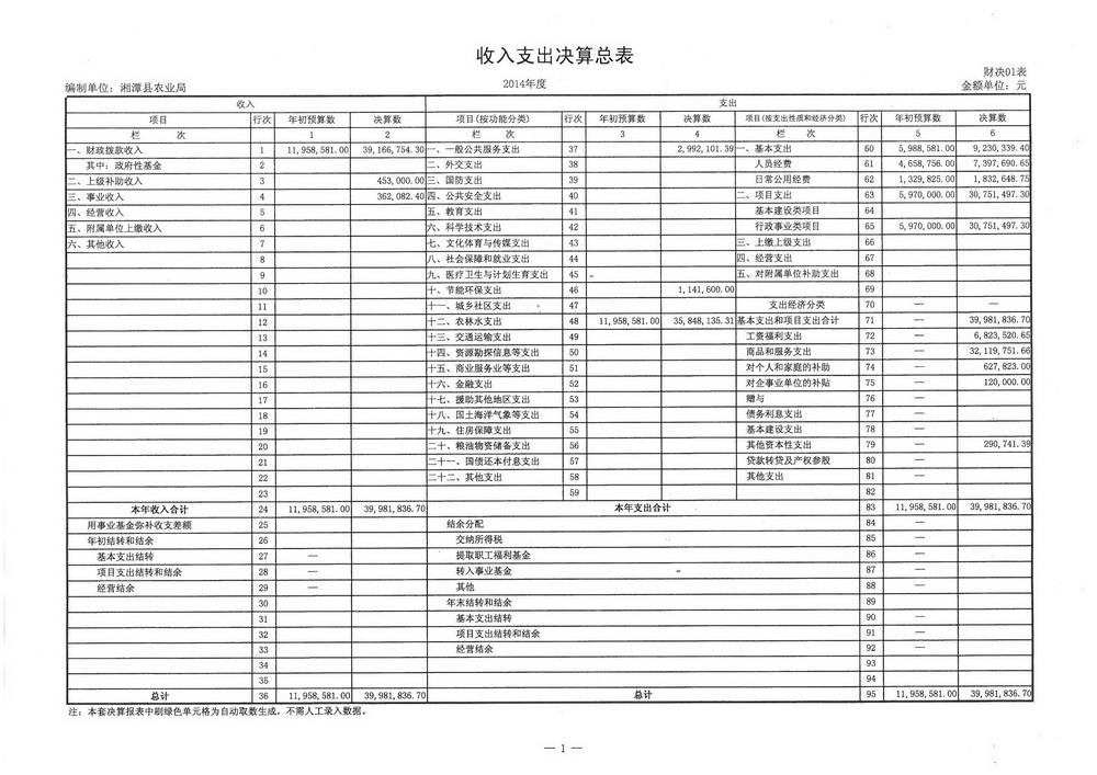 湘潭縣農(nóng)業(yè)局2014年度決算