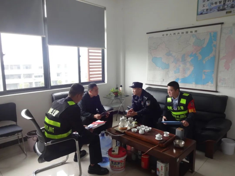 義警隊員到達(dá)園區(qū)某公司開展走訪宣傳活動。